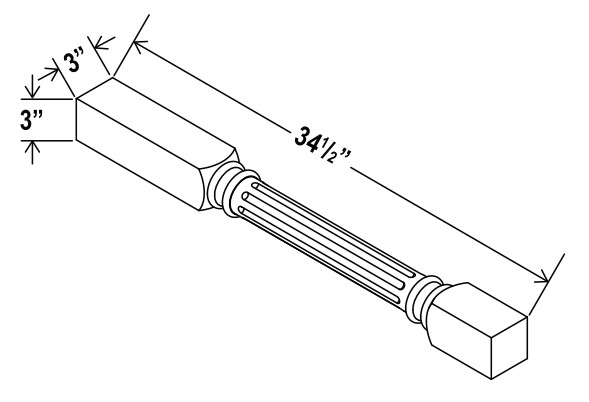 Black Shaker - Fluted Decorative Leg - 3"W X 34 1/2"H X 3"D