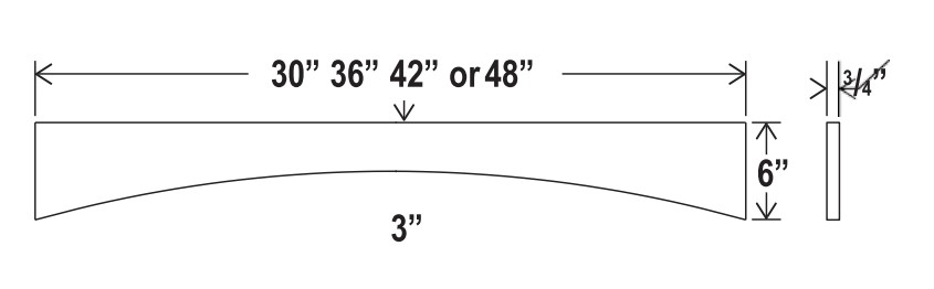 Black Shaker - Arched Valance - 42"W X 6"H X 3/4"D