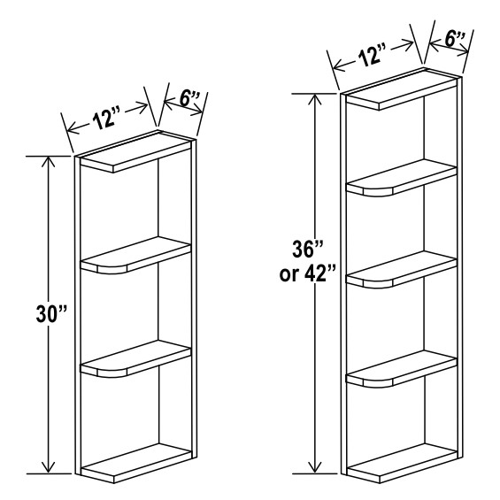 Black Shaker - Wall End Shelf - 6"W X 42"H X 12"D - 4 Shelves